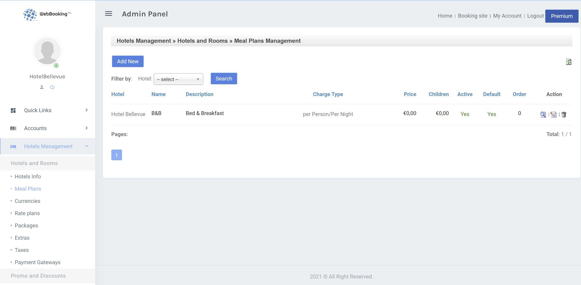 [wph_warning bg_color="#eb968d" text_color="#000000"]Make sure you always have at least 1 Meal plan. Otherwise, your Booking engine may not work and may not show available rooms when guest is seeking for availability.[/wph_warning]